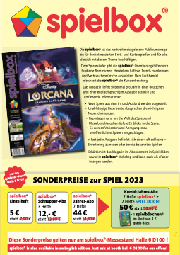 Diese Sonderpreise gelten nur am spielbox®-Messestand Halle 6 D100 ! spielbox® is also available in an English edition. Just ask at booth hall 6 D100 for our offers!