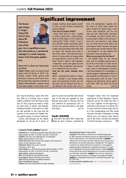 All rights reserved. The Publisher assumes no responsibility for claims made in advertisements. The information presented in spielbox® special is from many sources for which there can be no warranty of re- sponsibility as to accuracy, originality or completeness. The magazine is sold with the understanding that the publisher is not engaged in rendering product endorsements or providing instructions as a substi- tute for appropriate training by qualified sources. Therefore spielbox cannot and will not assume responsibility for any actions arising from any information published in spielbox. The use of any trademarks is not meant to be construed as a challenge to the trademark holders. spielbox® is a Registered Trademark of w. nostheide verlag gmbh, Reg. No. 3,870,584.