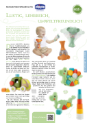 Der italienische Hersteller Chicco en- gagiert sich mit seiner Spielzeuglinie ECO+ für Nachhaltigkeit: In Europa produzierte Spielideen bestehen hier aus recycelten oder pflanzlichen Ma- terialien, was die Umweltbelastung durch fossile Rohstoffe senkt und dazu beiträgt, unseren Kindern eine bessere Welt zu hinterlassen.