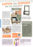 So auch der Kaufladen & Café in elegantem Pastellgrün: Je nachdem, wie herum die Kinder ihn aufstellen, verrät das Schild oben, ob gerade der „Shop“ oder das „Café“ geöffnet hat. Dadurch ergeben sich ganz unterschied- liche Rollenspiele – mal verkauft man Schätze an Geschwister und Freunde, mal serviert man ihnen